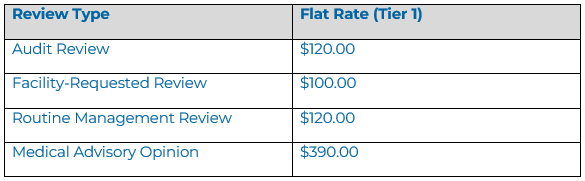 Note: Tier assignment is determined by the VA. All rates are per review completed.